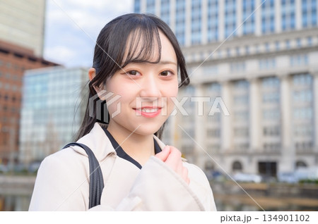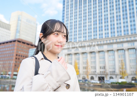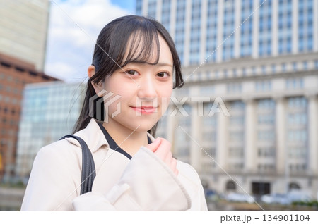 オフィス街に立つ日本人ビジネスウーマン