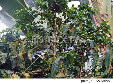 赤いコーヒーの実 カラフルな珈琲の実 コーヒー農園 コーヒー栽培温室