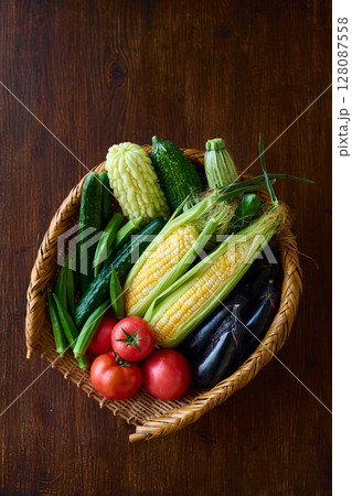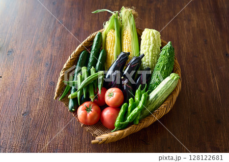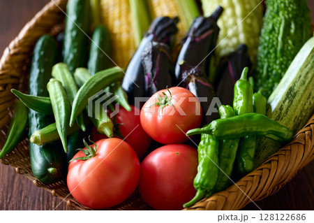 ざるに盛った夏野菜