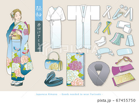 七五三着物の着付けアイテム一式(7歳女児)ベクターイラスト
