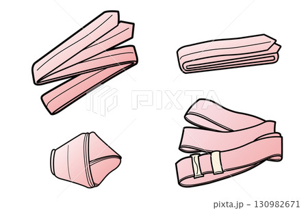腰紐・ゴムベルト・帯板・帯枕・伊達締めベクターイラスト(着物着付けアイテム)