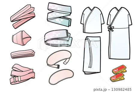 腰紐・ゴムベルト・帯板・伊達締め・着物クリップ・下着のベクターイラスト(着物着付けアイテム)