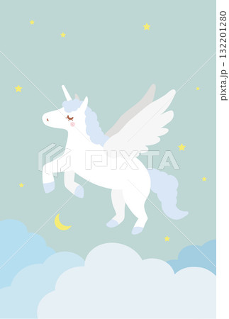 夢の空を駆けるユニコーン(午年の年賀状2026年・文字なし)