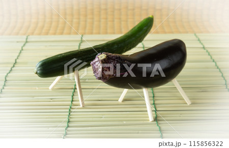 精霊馬と精霊牛 キュウリで作った精霊馬 ナスで作った精霊牛 精霊棚 盆棚 お飾り