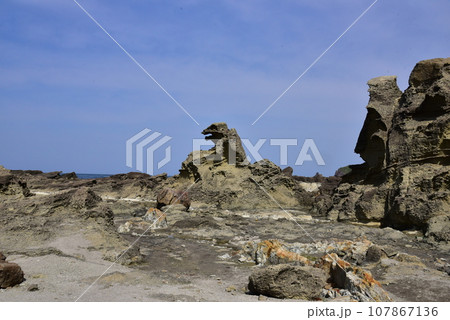 ゴジラ岩 太陽 潮瀬埼岩礁地帯奇岩怪石
