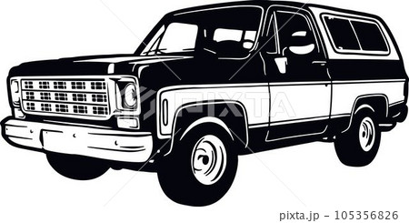Classic Truck 70s, Muscle car, Classic car, Stencil, Silhouette, Vector Clip Art - Truck 4x4 Off Road - Off-road car for tshirt and emblem