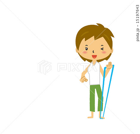レジスタンスバンド、ゴムチューブを利用してエクササイズを行う女性のイラスト