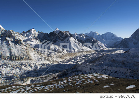 カラパタールよりクーンブ・ヒマールの山々とクーンブ氷河