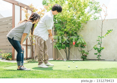 パターゴルフをして楽しむカップル(レジャー,バカンス)