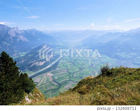 東スイスの景色 ライン川とゴンツェン山とアルヴィアー山