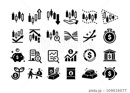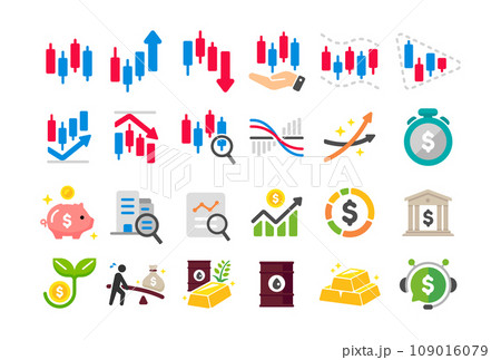 株式投資・資産運用ベクターアイコンイラストセット (カラー)