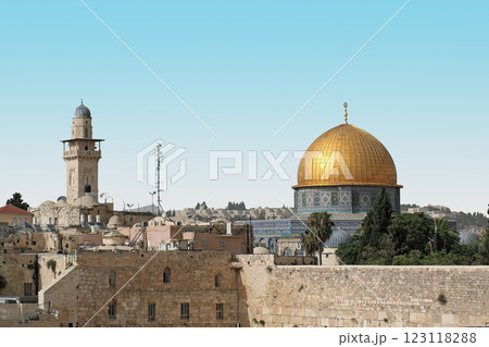 Beautiful panoramic wiew on Jerusalem and the Temple Mount with the Dome of the Rock.