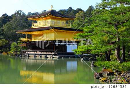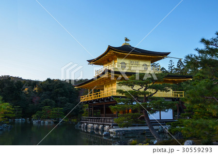 Golden temple in Japan, Kinkaku-ji Gold Pavilion Buddhist Zen Temple Travel landmark at Kyoto
