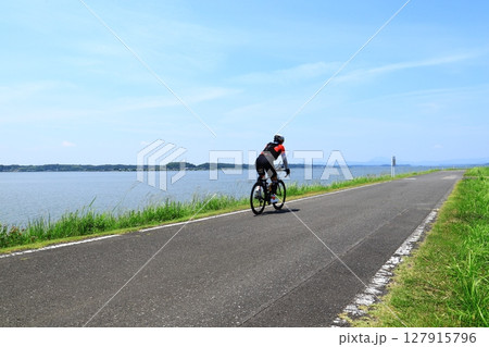 つくば霞ヶ浦りんりんロードをサイクリングするサイクリスト