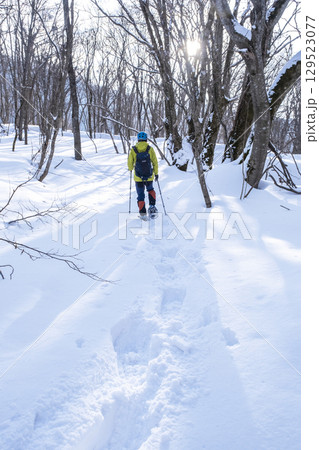 森の新雪をスノーシューで楽しむイメージ 大山木谷沢渓流