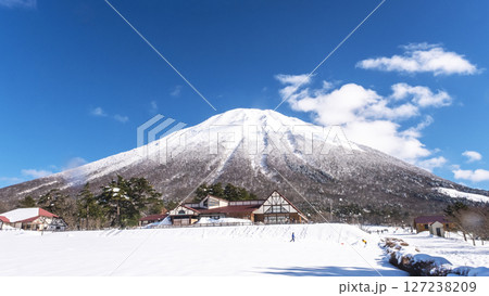 青空を背景にスノーシュートレッキングのイメージ 蒜山高原