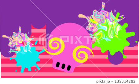 毒々しい色彩のドクロモチーフが印象的なサイケデリック背景イラスト