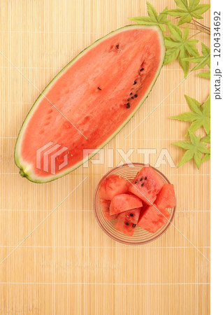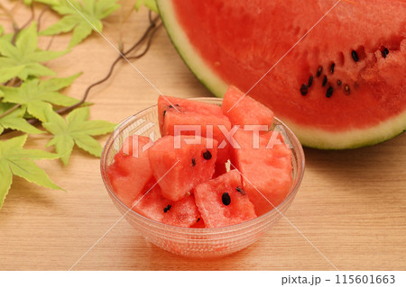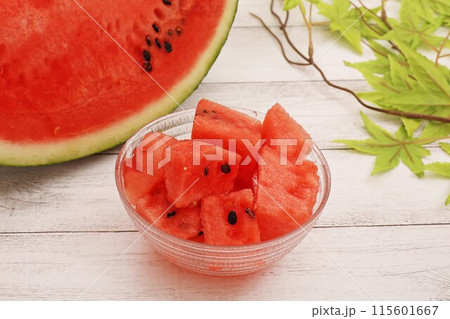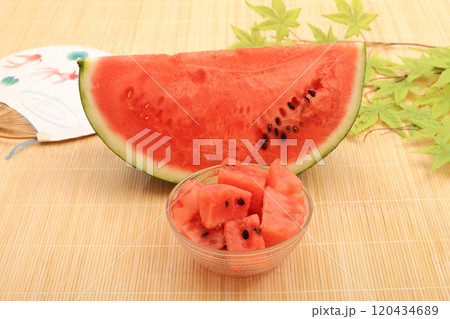 すいかのイラストセット(赤・クリーム・サイコロ・塩・先割れスプーン)