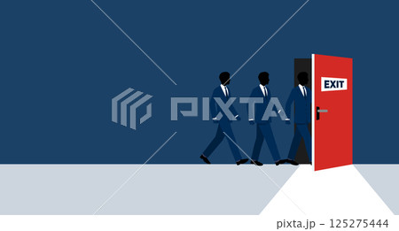 出口に向かうビジネスマンたちのイメージイラスト、ベクター