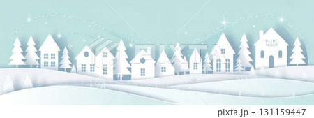雪の街並みと星が輝くサイレントナイトのイラスト