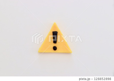 Exclamation point in yellow square with shadow. Symbol of caution. Danger warning sign. Vector illustration on a transparent background.
