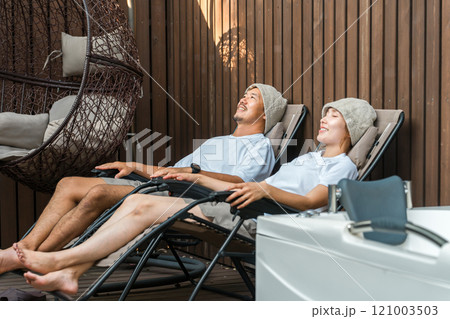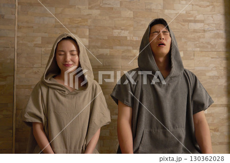サウナをする若いカップル