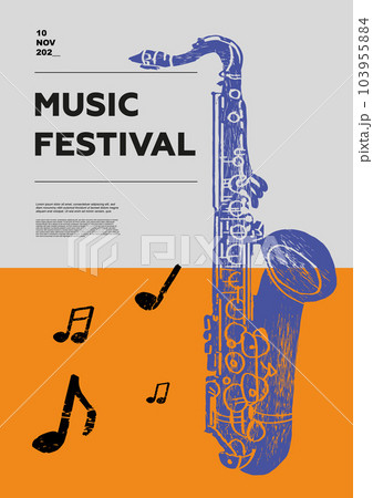 縦型Aサイズの背景素材。サクソフォーンが描かれたレトロなデザインのベクターイラストデータ