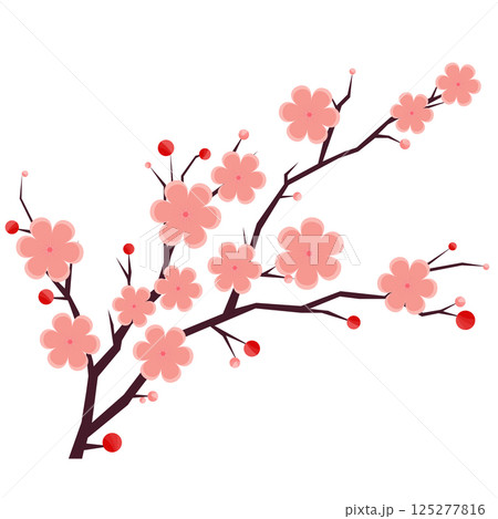 Illustration of branch with flower. Apple, sakura or cherry blossom.