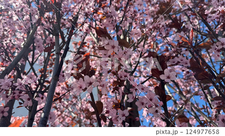 Blossoming Cherry Tree Branches in Vibrant Springtime Sunlight