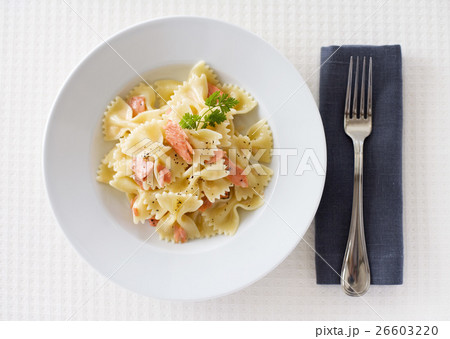 サーモンクリームのショートパスタ