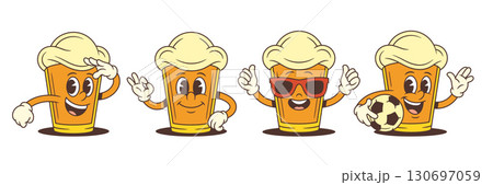 Funny Beer Mascot Character With Football Ball Thumbs Up Ok And Salute Gestures Vector Set