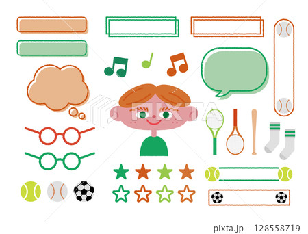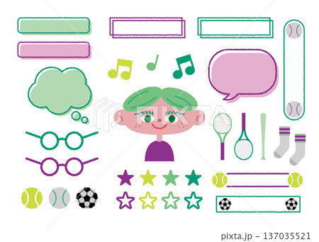 男の子とフレーム・素材(グリーン・パープル)