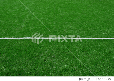 Soccer Football Field Artificial Grass With White Line.