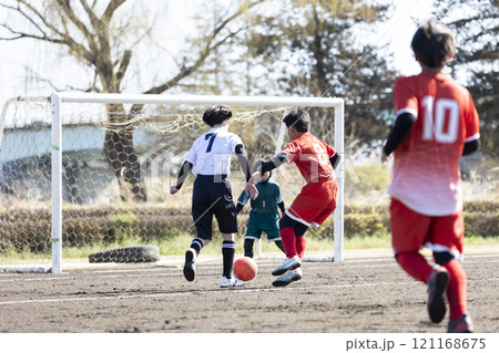 サッカーの試合をする小学生の男の子
