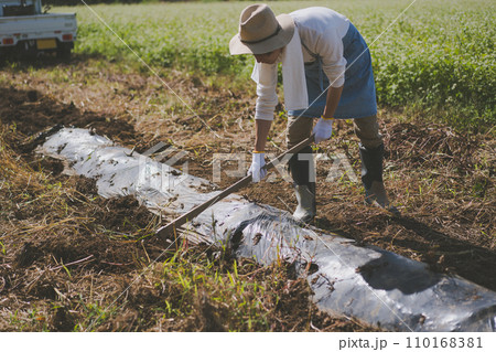 さつまいも畑のマルチ剥がし