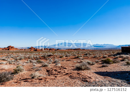 乾燥地帯に広がる赤土の大地と遠くの山並み