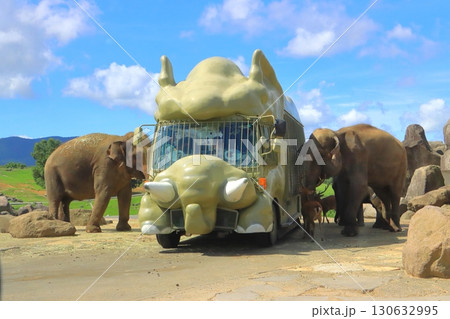 アジアゾウとサファリバス(アフリカンサファリ)