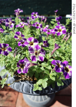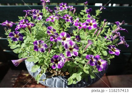 ヘリオトロープの寄せ植え、サフィニアの寄せ鉢
