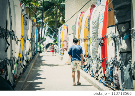 ハワイ、ワイキキビーチにつながるサーフボードの小道