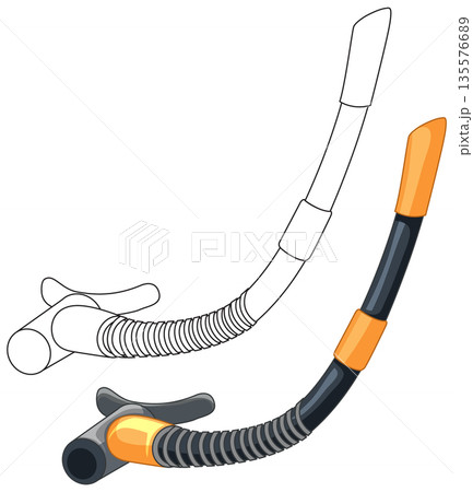 Orange and Black Diving Snorkel Vector Illustration with Outline Version
