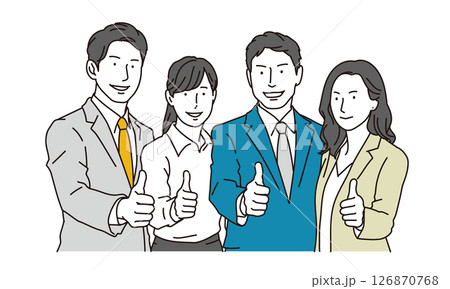 ガッツポーズ サムズアップする会社員 仕事仲間 チームワーク