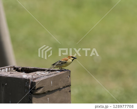 杭に留まるセアカスズメ