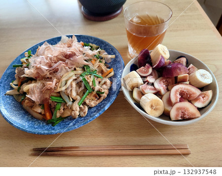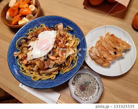"Yaki-udon" noodle / 町の大衆食堂で食べる焼うどん(旬のデザート付き)