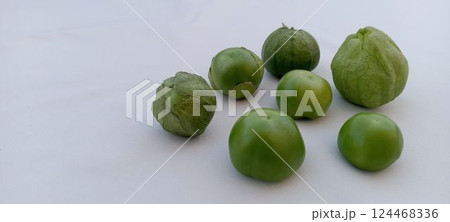 緑色のトマティーヨの果実とサルサベルデ