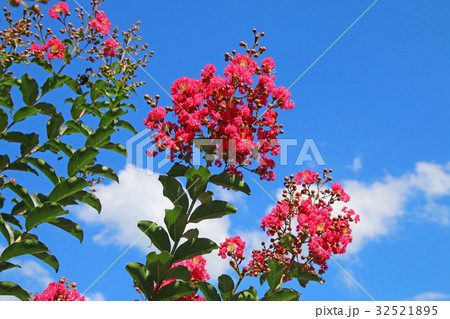 サルスベリの花 屋久島百日紅 青空 イメージ