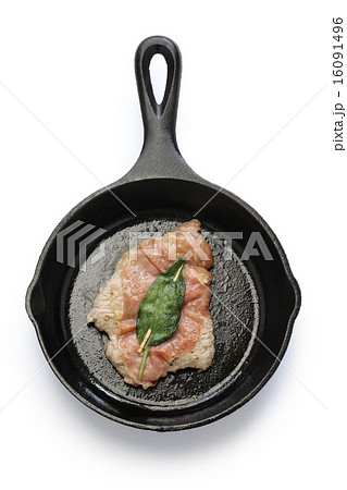 Italian saltimbocca alla romana veal escalopes with prosciutto and sage in a butter sauce