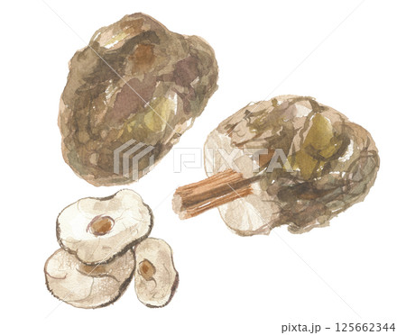 水彩で描いたマツホド 茯苓 ブクリョウ