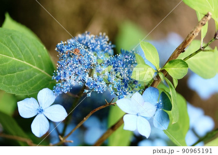 水色の山紫陽花(ヤマアジサイ、やまあじさい)