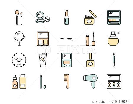 化粧品 メイク道具 美容に関するアイコンセット カラー