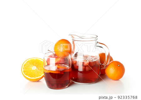 Refreshing Summer Citrus Fruit Sangria in crystal glass isolated on white background